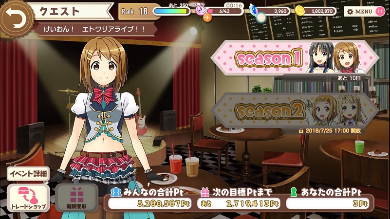 それでは、さっそく今現在のプレイ状況です。現在、『野クルと北の山と初キャンプ△』に挑戦中。