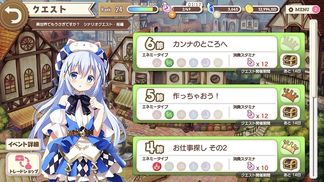 本日、ごちうさの限定クエスト始まりました。 第5節まですすめました。