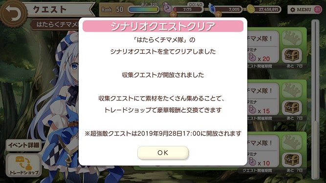 そしてさっき始めたばっかりの『はたらくチマメ隊』のシナリオクエストを約30分でクリアしてしまったぜよ。 --